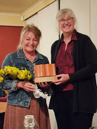 CONGRATULATIONS to June Pitman-Hayes for her evocative story, The kina girl. As the highest placed Northland writer, June was awarded the NZSA Northland Regional Flash Fiction trophy and cash prize, presented by NZSA Northland Chair, Jenni Edwards. June’s 100 word micro story Paper Dolls was also short-listed for the micro madness international competition. Her read-aloud brought both stories to life for an appreciative audience.