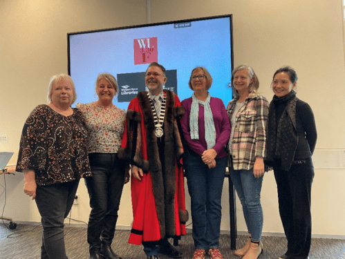 Adults L to R: Kim Martins 1st, June Pitman-Hayes 2nd, Mayor Vince Cocurullo, Anne Kjaer Commended, Tracie Lark 3rd, Vera Dong Commended (absent Sara Crane & Teresa Lee both Highly Commended).